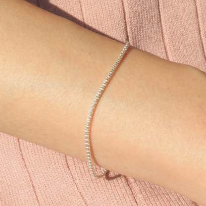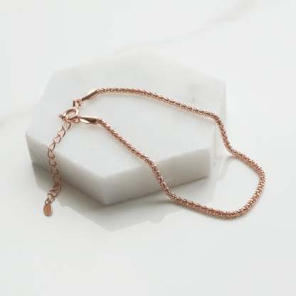Our sassy snake bracelet is a brilliant choice for the sophisticated and subtle embellishment your outfit deserves. The snake skin inspired pattern of the chain is a fine detailed contemporary work of art. The versatile adornment is available in 925 sterling silver. 18k gold vermeil. and rose gold vermeil to complete your everyday outfit. A beautiful bracelet that can be worn by itself or as a complimenting layer.